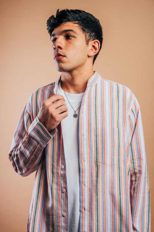 Band Collar Shirt 'Tequila Sunrise Handloom'