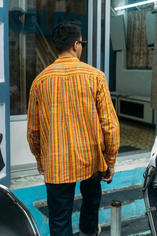 Band Collar Shirt 'Tequila Sunrise Handloom'
