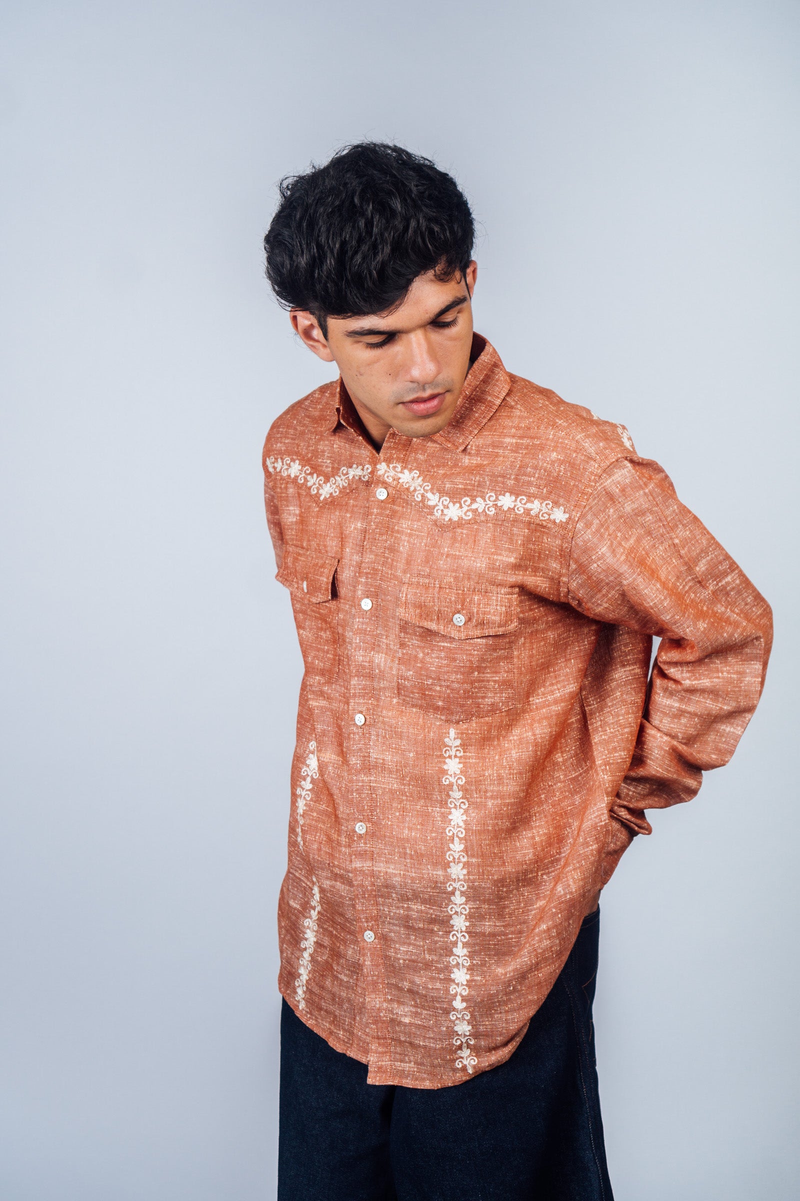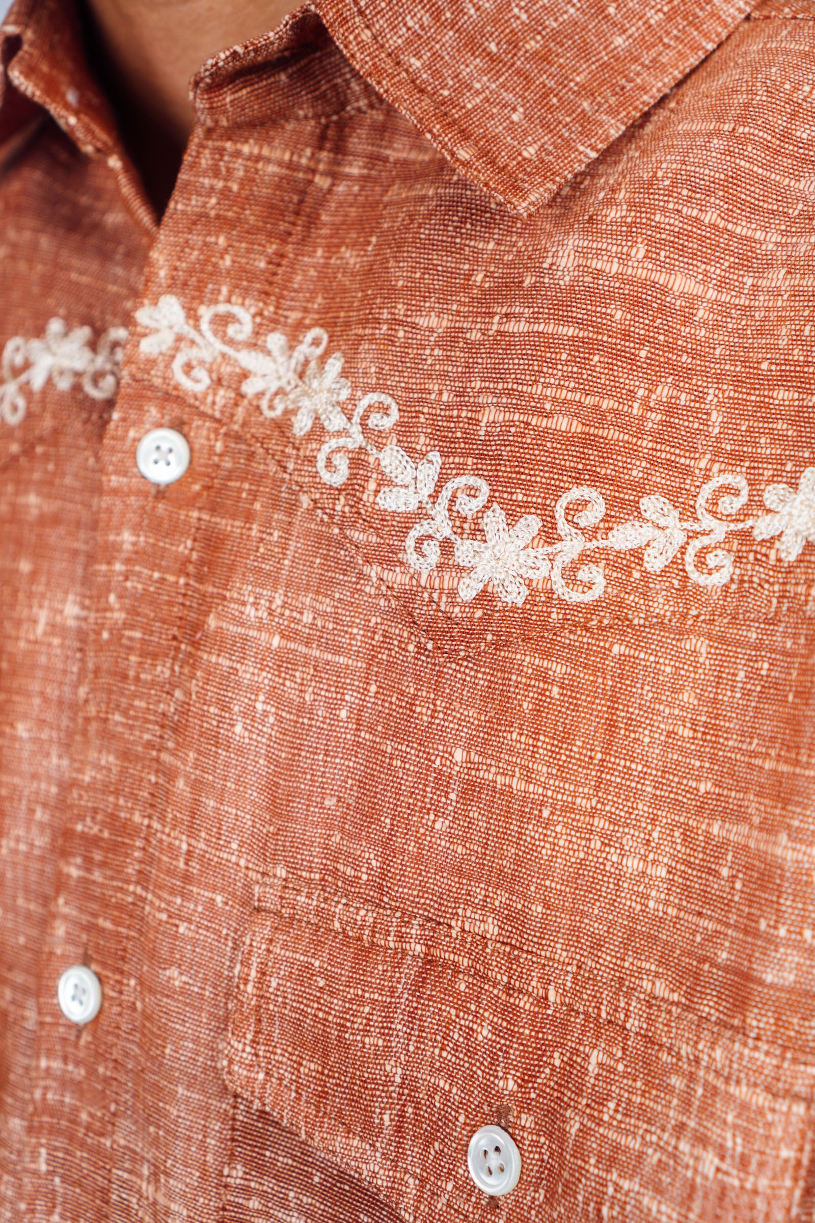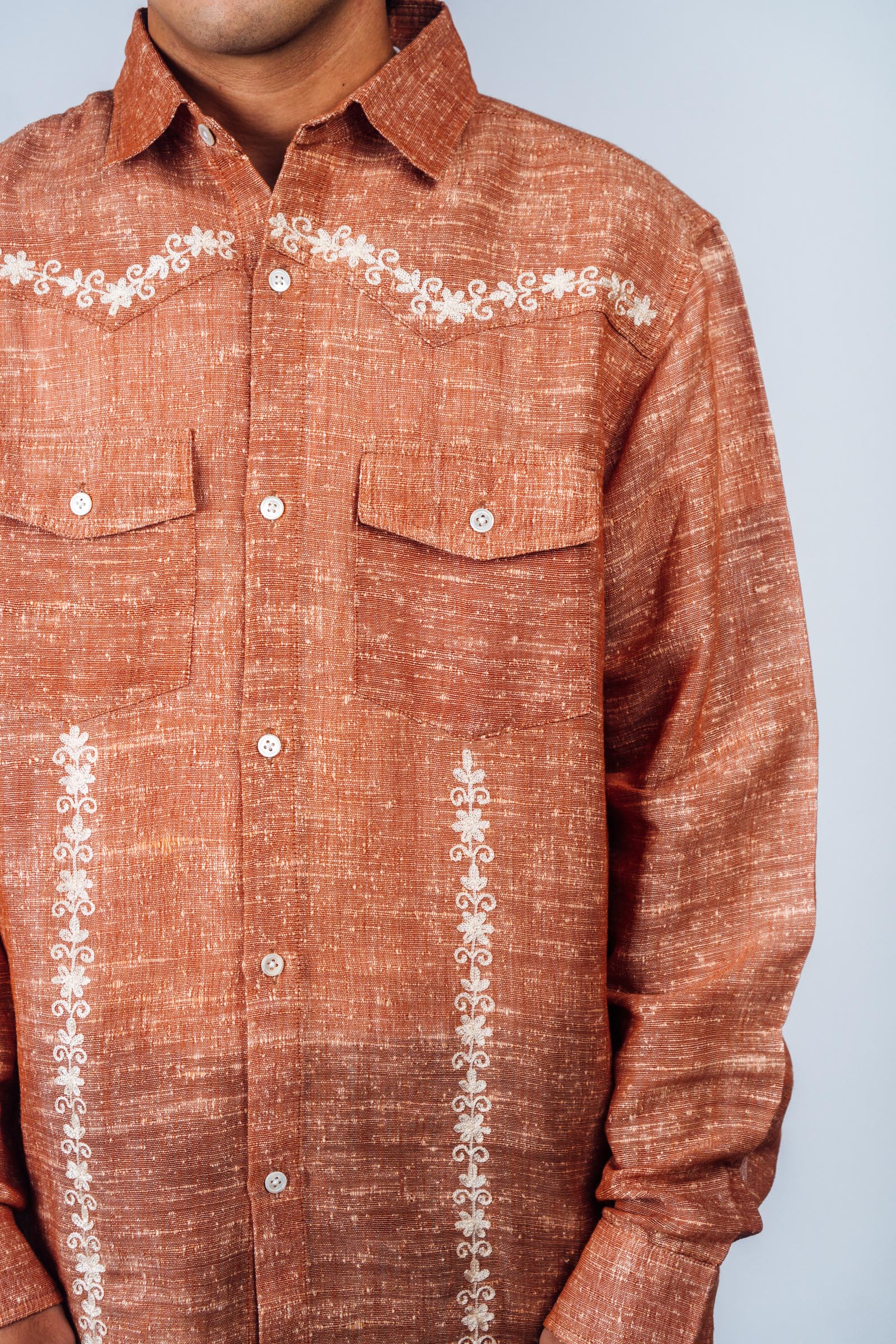Embroidered Western Shirt 'Burnt Orange Khadi'