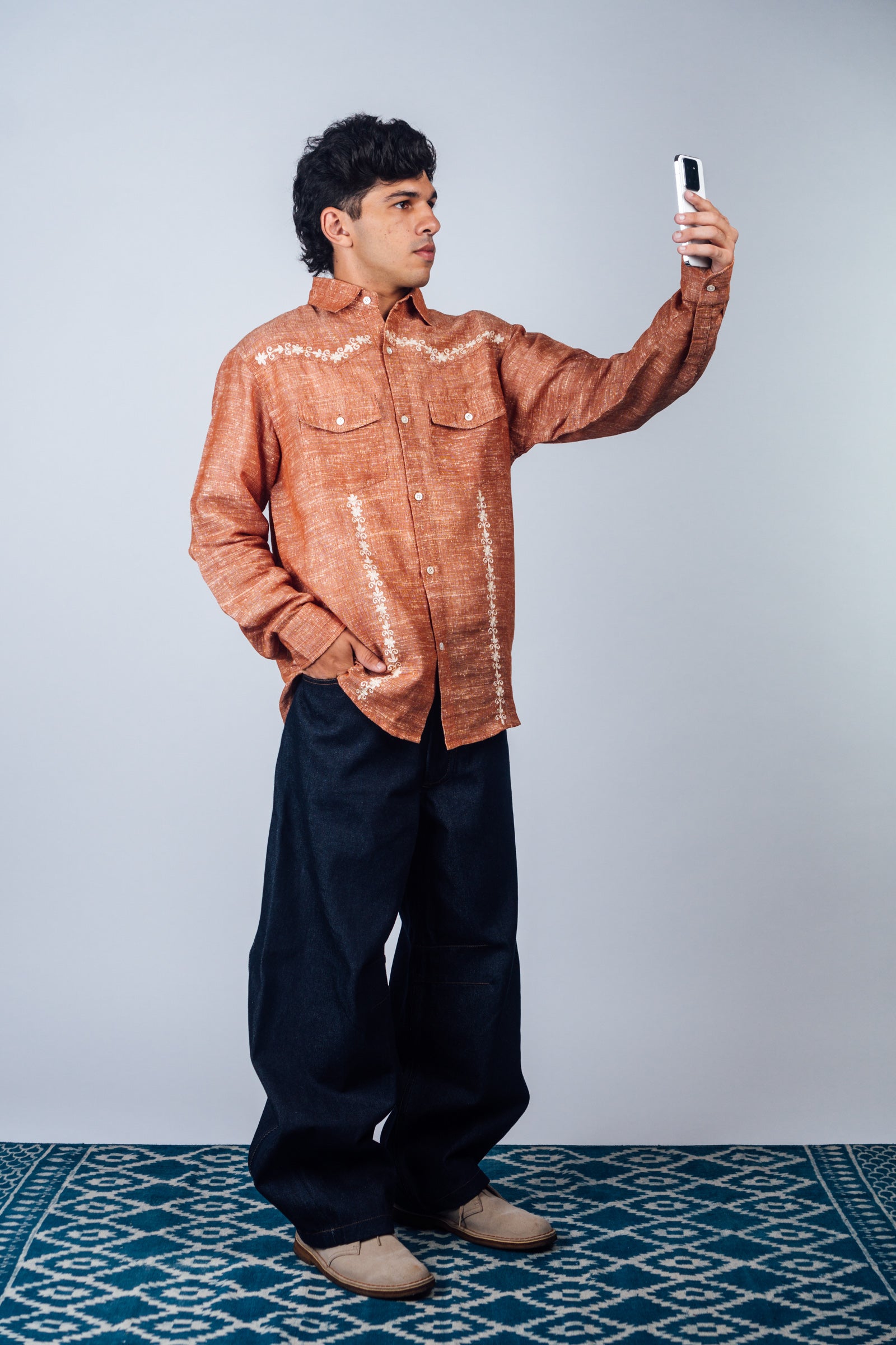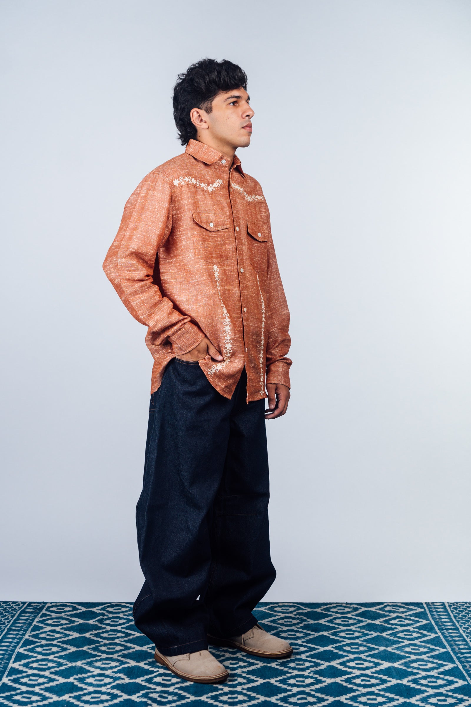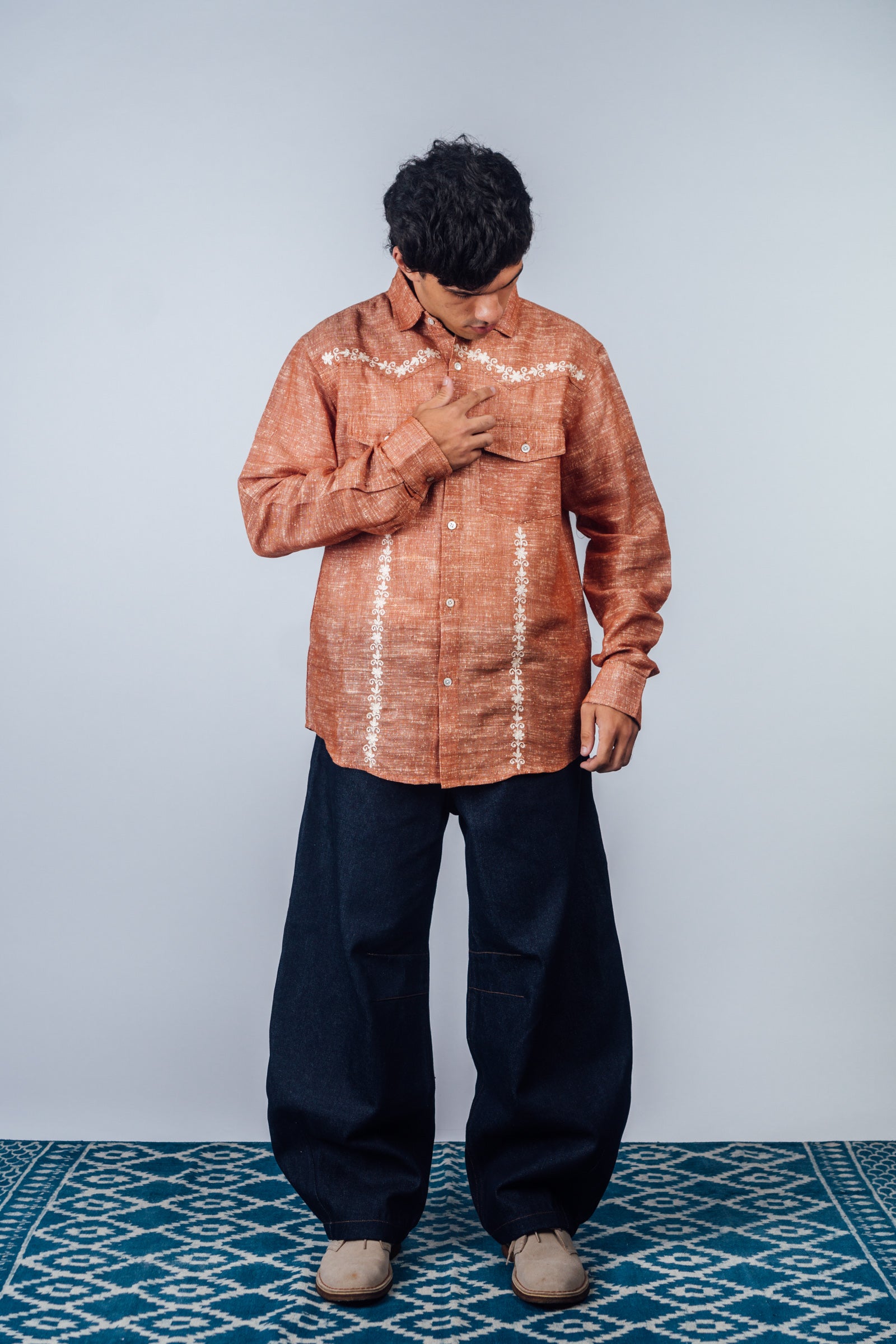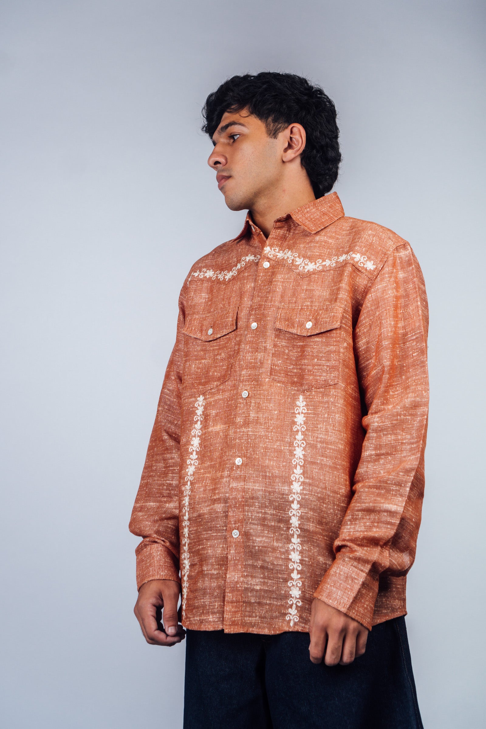 Embroidered Western Shirt 'Burnt Orange Khadi'
