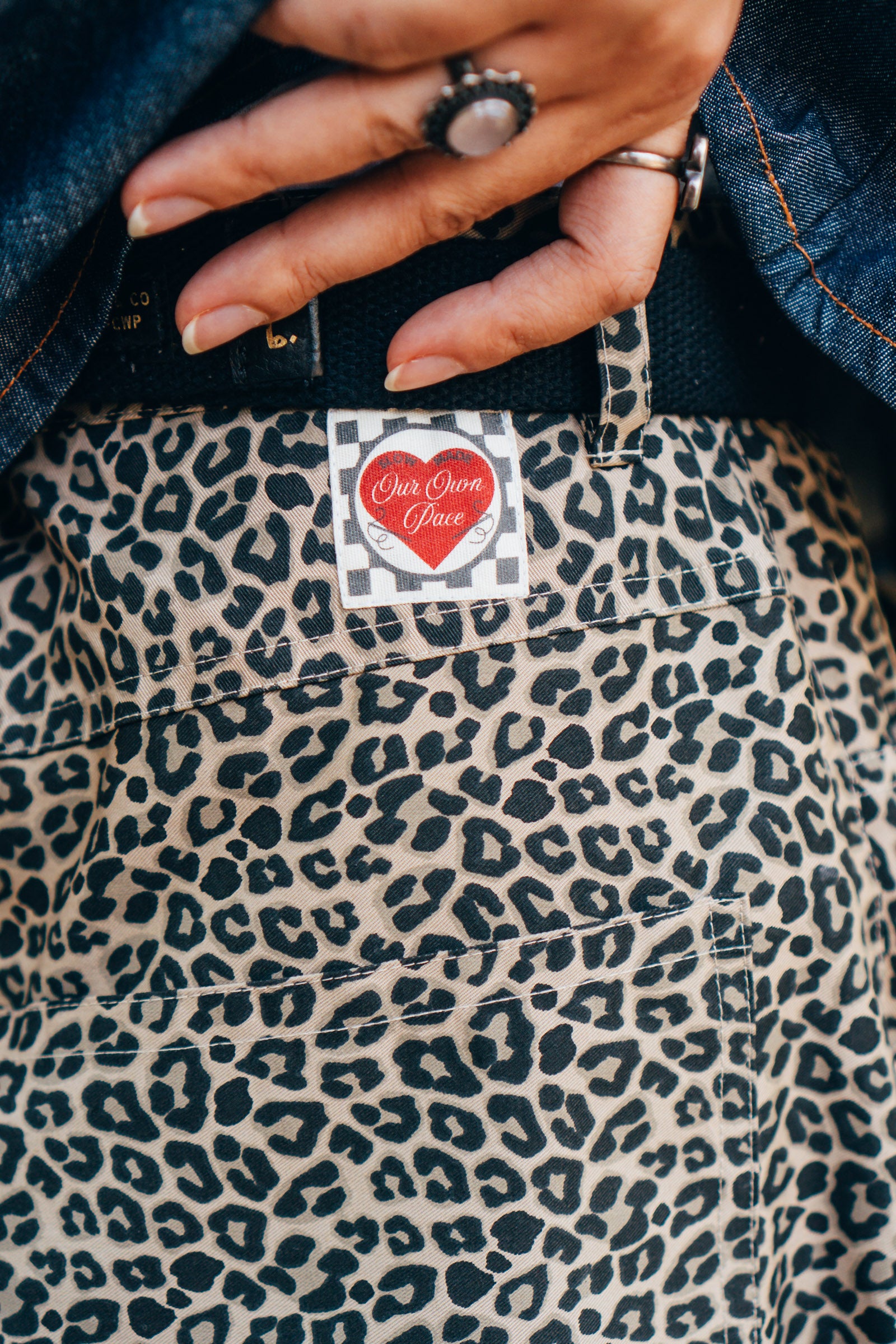 We've combined two of YOUR favourites and our bestsellers in these pants: Our version of the most popular jeans of the season: the Horseshoe and the Leopard print. These pants feature an all-over leopard print that will make a bold addition to your wardrobe and are fashioned with curved, wide legs that taper at the ankle. This playful pair of pants are a fun silhouette to add to your wardrobe - looks great paired with any top or shirt. These are unisex.