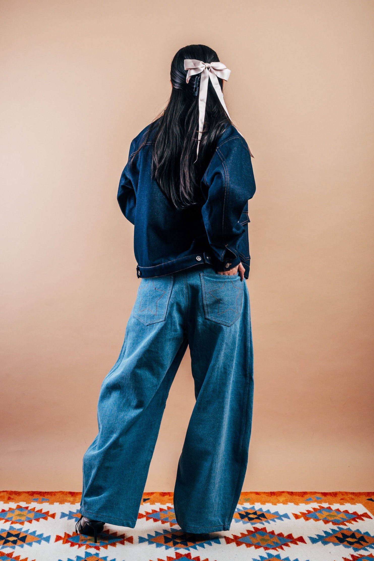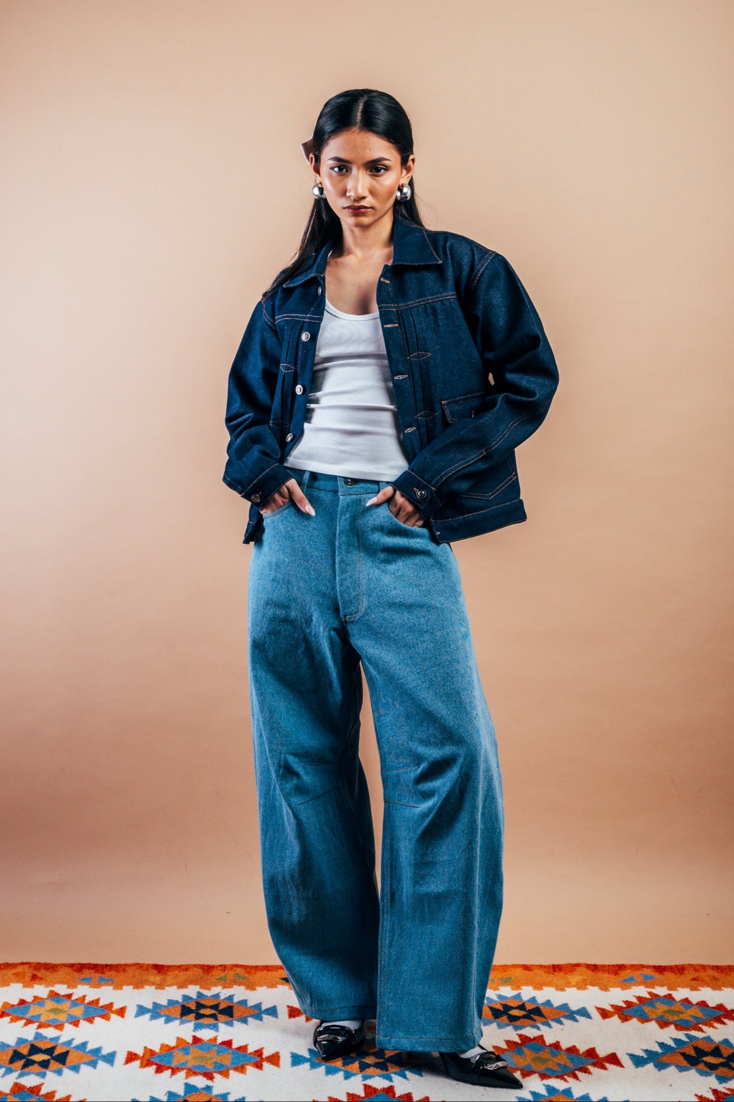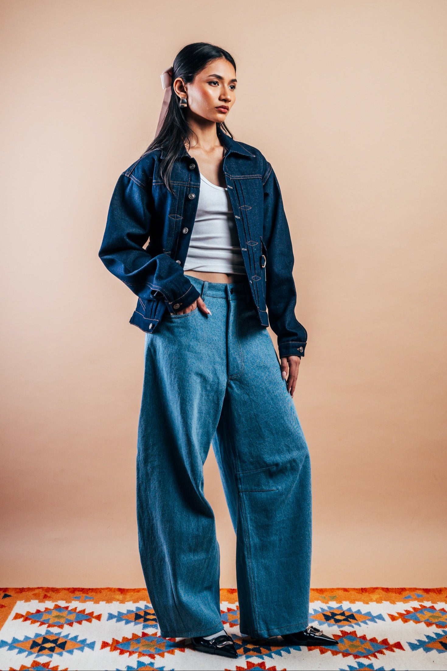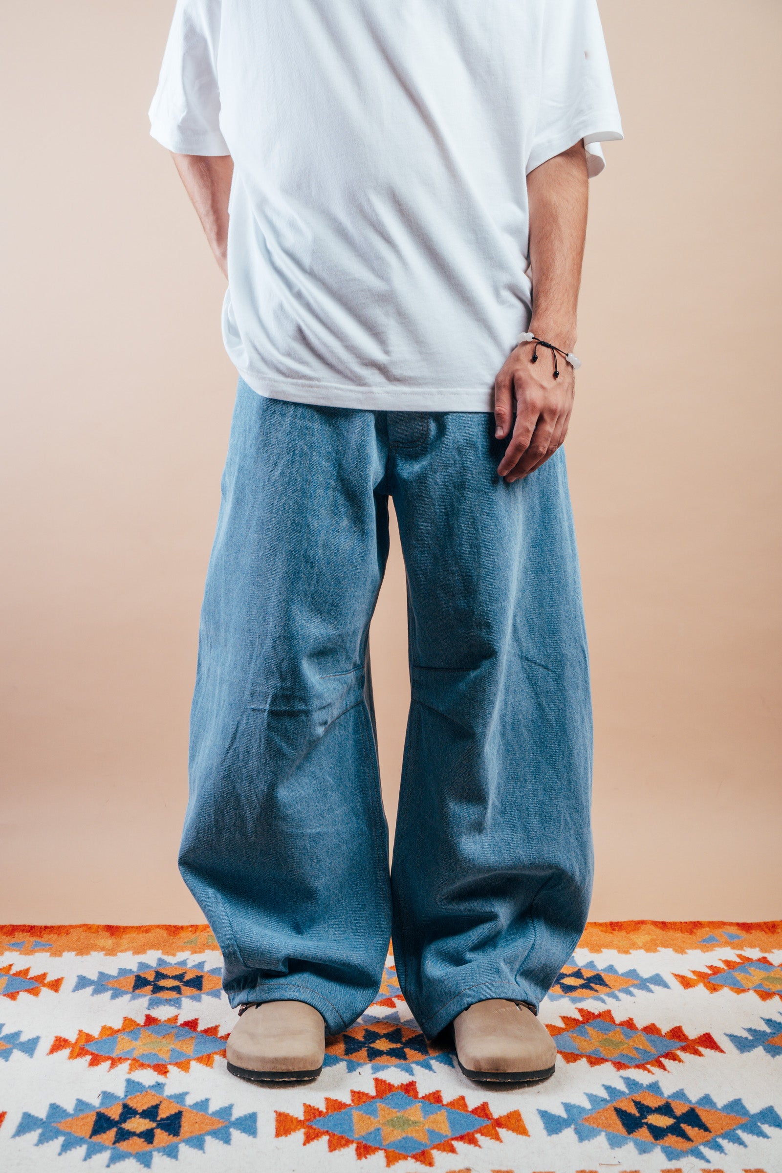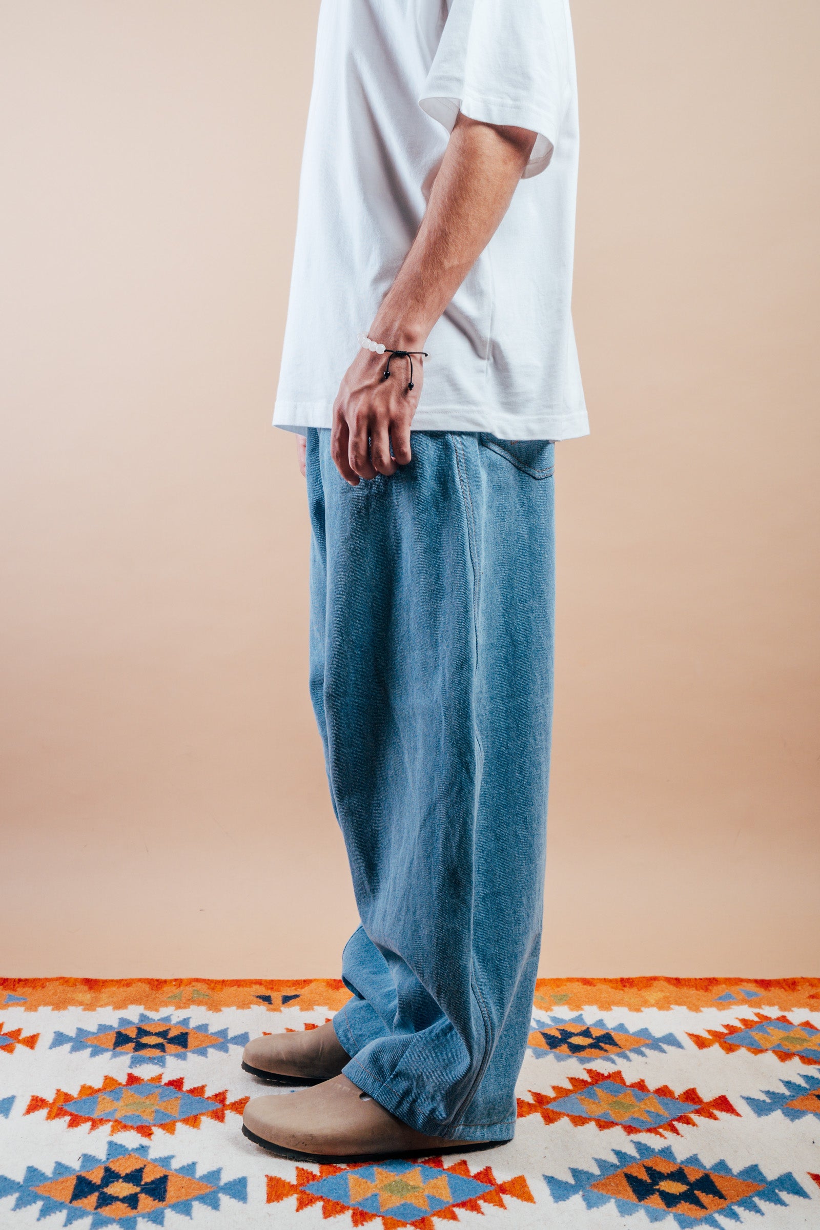 These jeans are made from Pre-consumer textile waste. Each year, 80 million tons of textiles are wasted in landfills. We’ve handpicked pre-consumer waste and end-of-roll fabrics from top Indian mills, giving them new life in a limited collection. This saves energy and redefines "waste." The question is: If a sustainable way to express your style existed, would you embrace it?