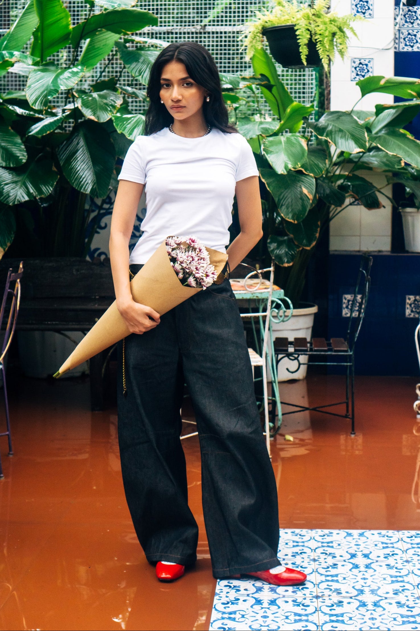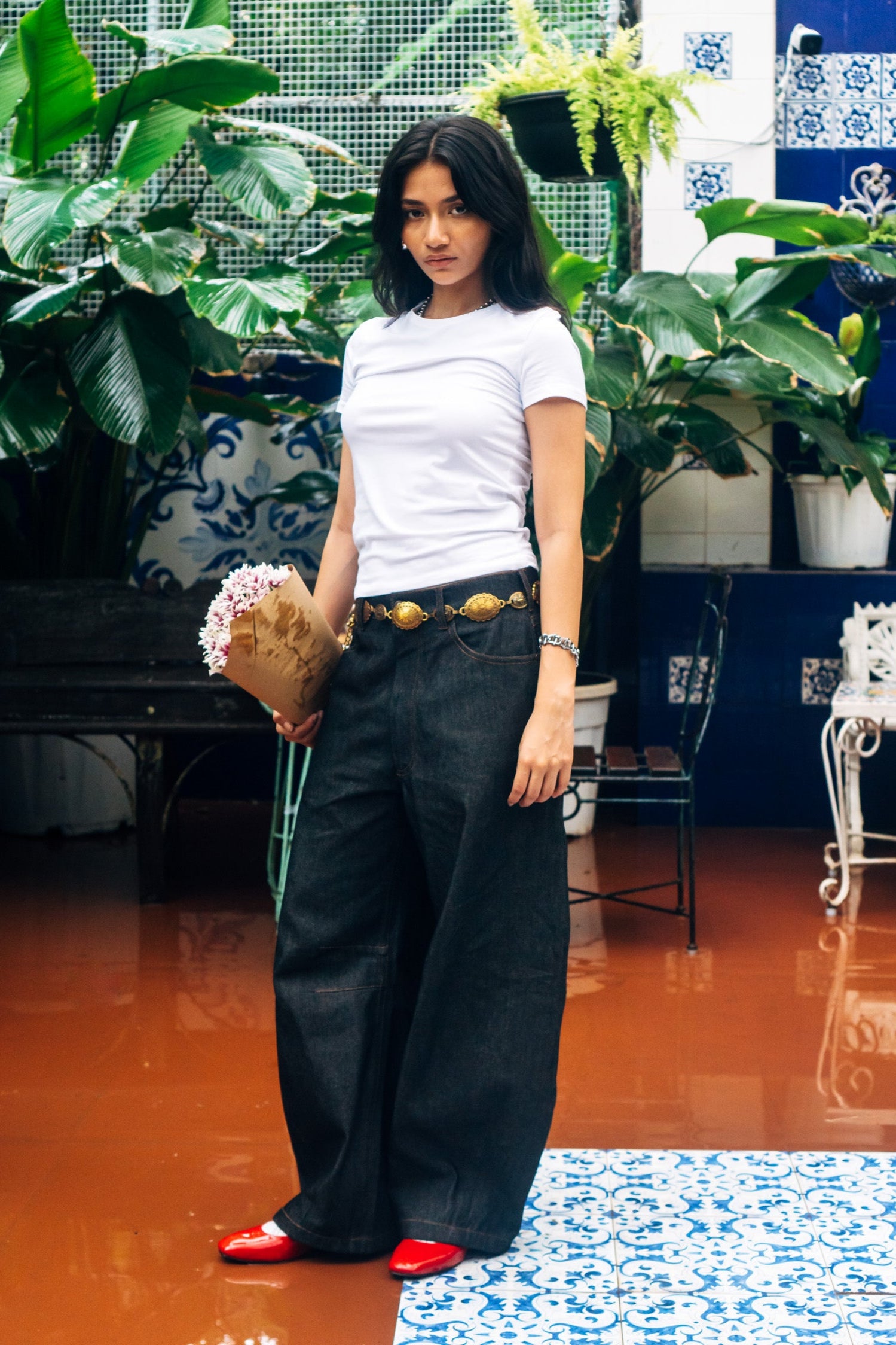 Our version of the most popular jeans of the season: the Horseshoe jeans, fashioned with curved, wide legs that taper at the ankle, they also feature hand applied antique brass rivets and a heart logo patch. These are unisex jeans crafted from Raw Denim. This playful pair of jeans is a fun silhouette to add to your denim collection - looks great paired with any top or shirt from the same collection.