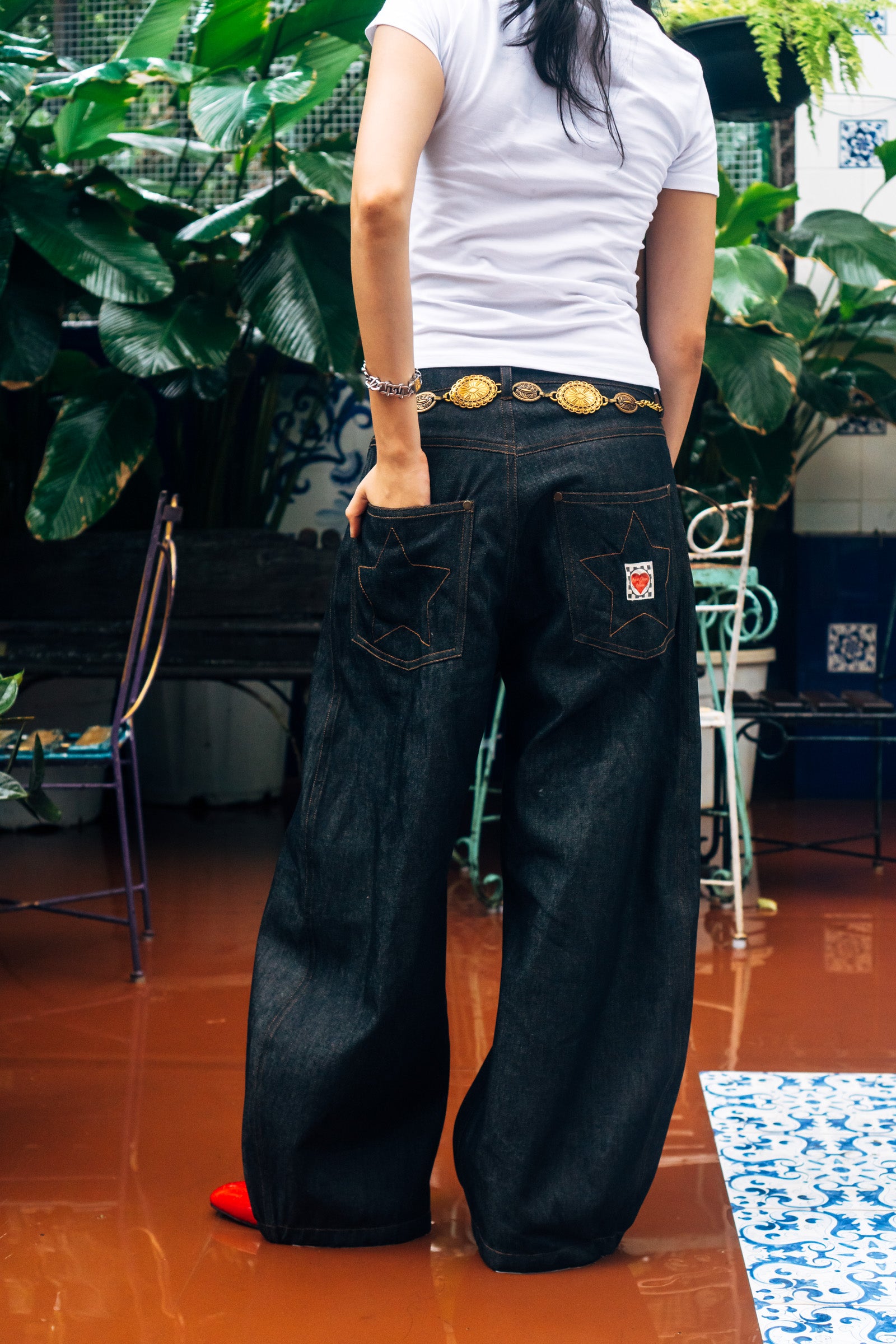 - Star Embroidery on the back pocket