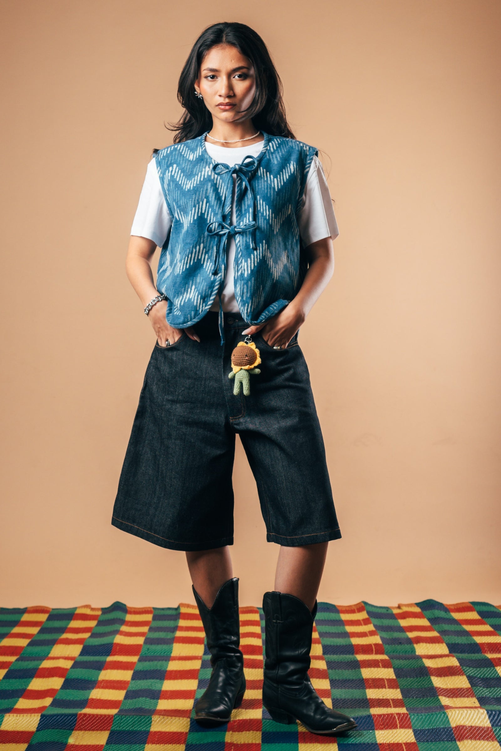 I'm A Star Horseshoe Jorts 'Raw Indigo'
