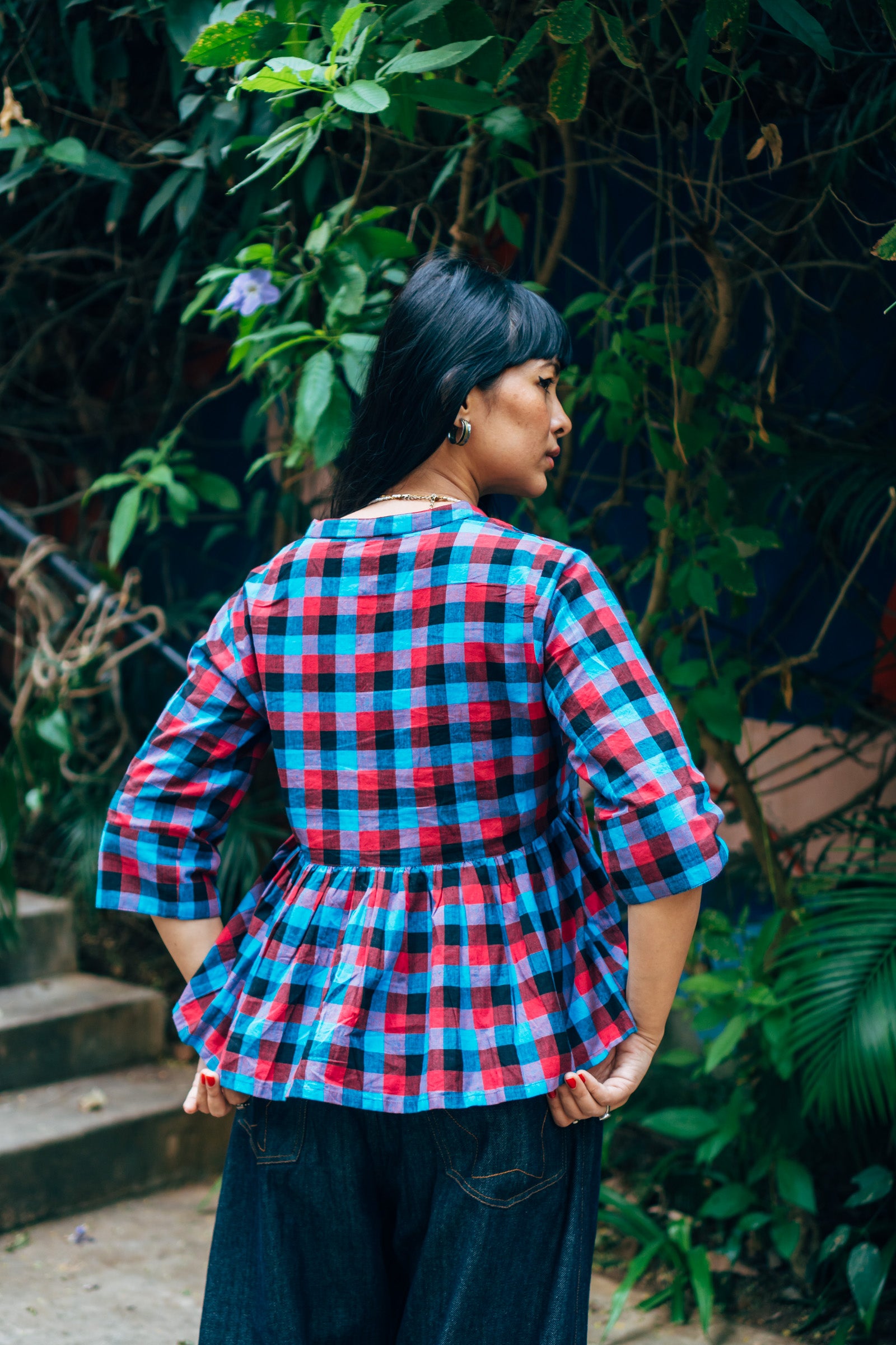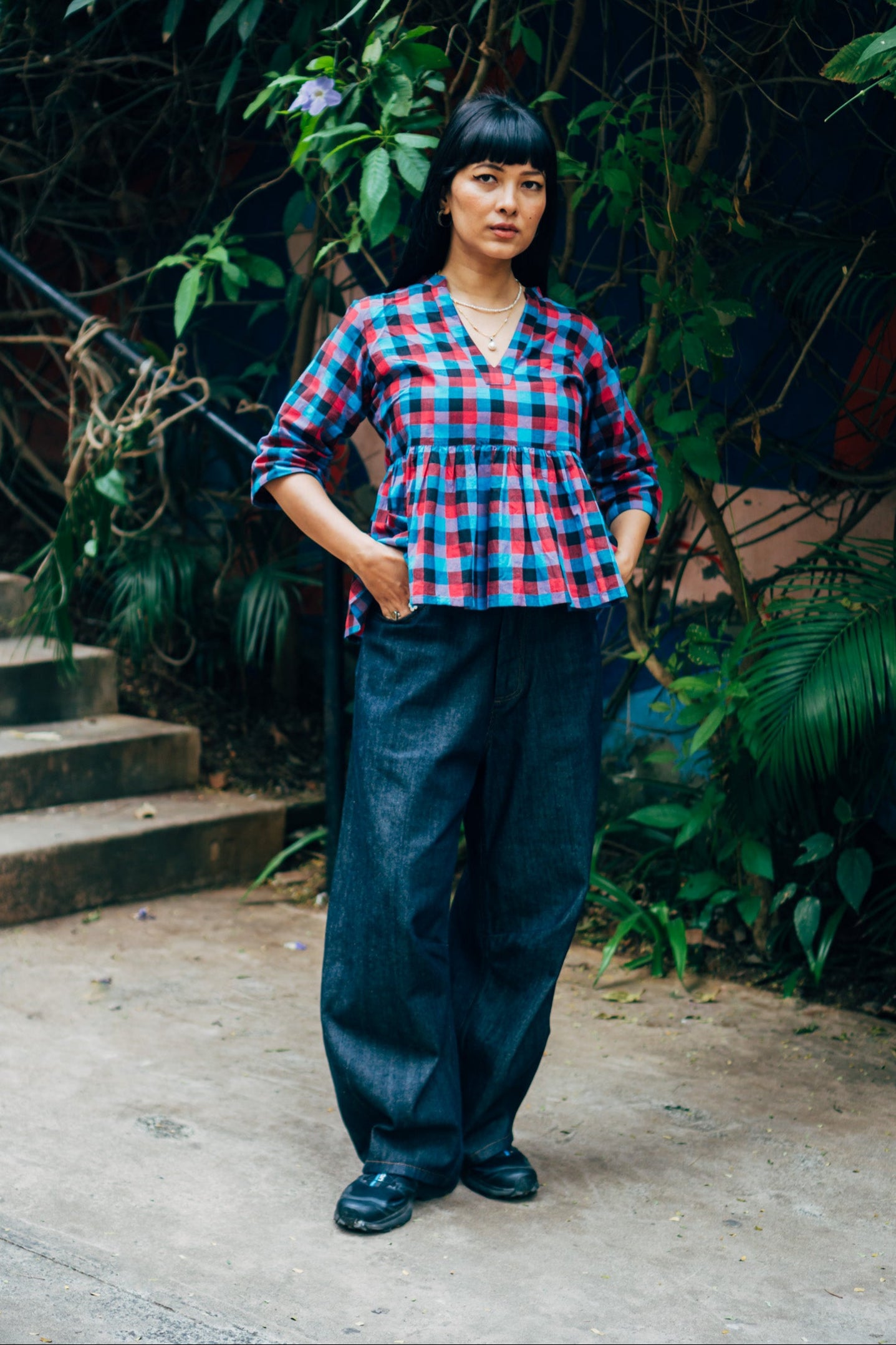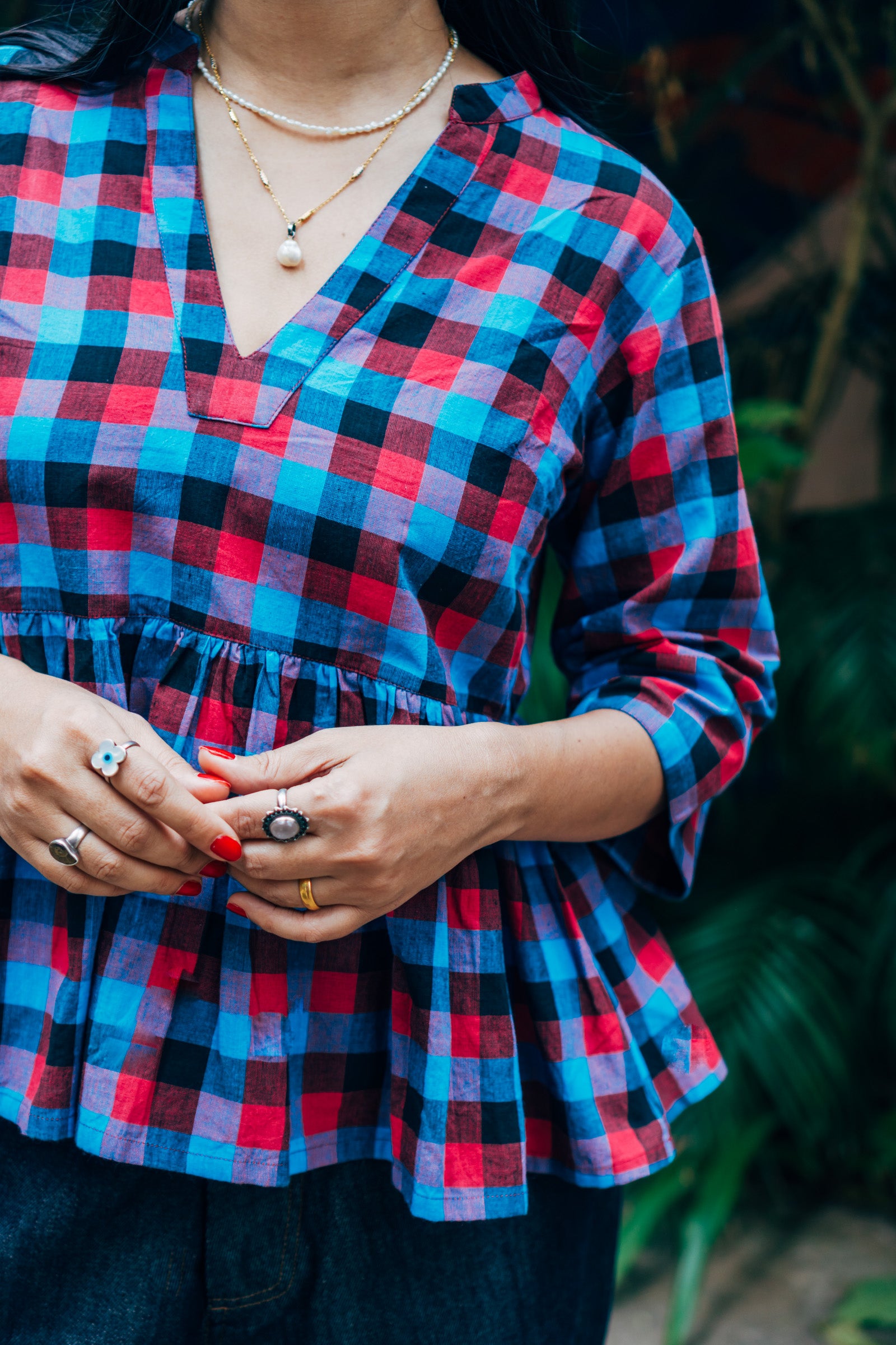 Our chic Handloom Cotton peplum top with a V-neck, is all about that added flair around the waist. It's the kind of top that pairs well with just about anything, adding a touch of charm everytime you put it on.