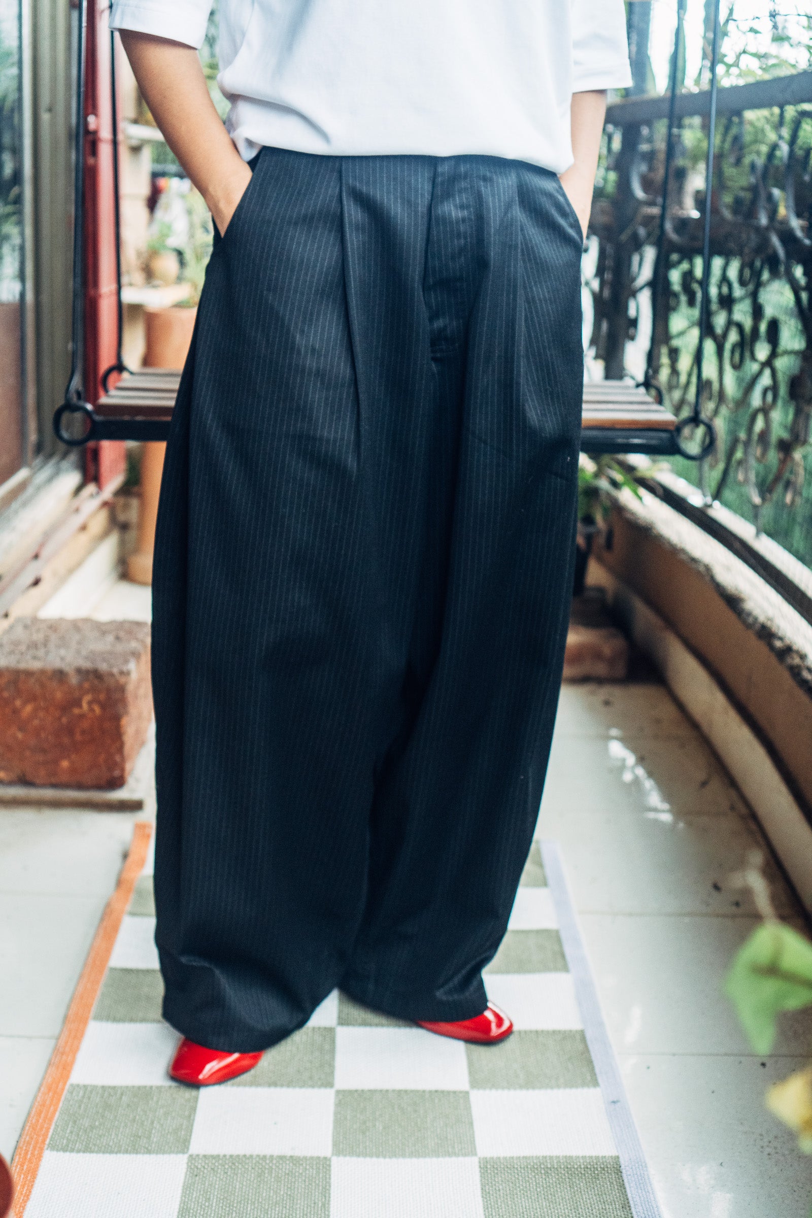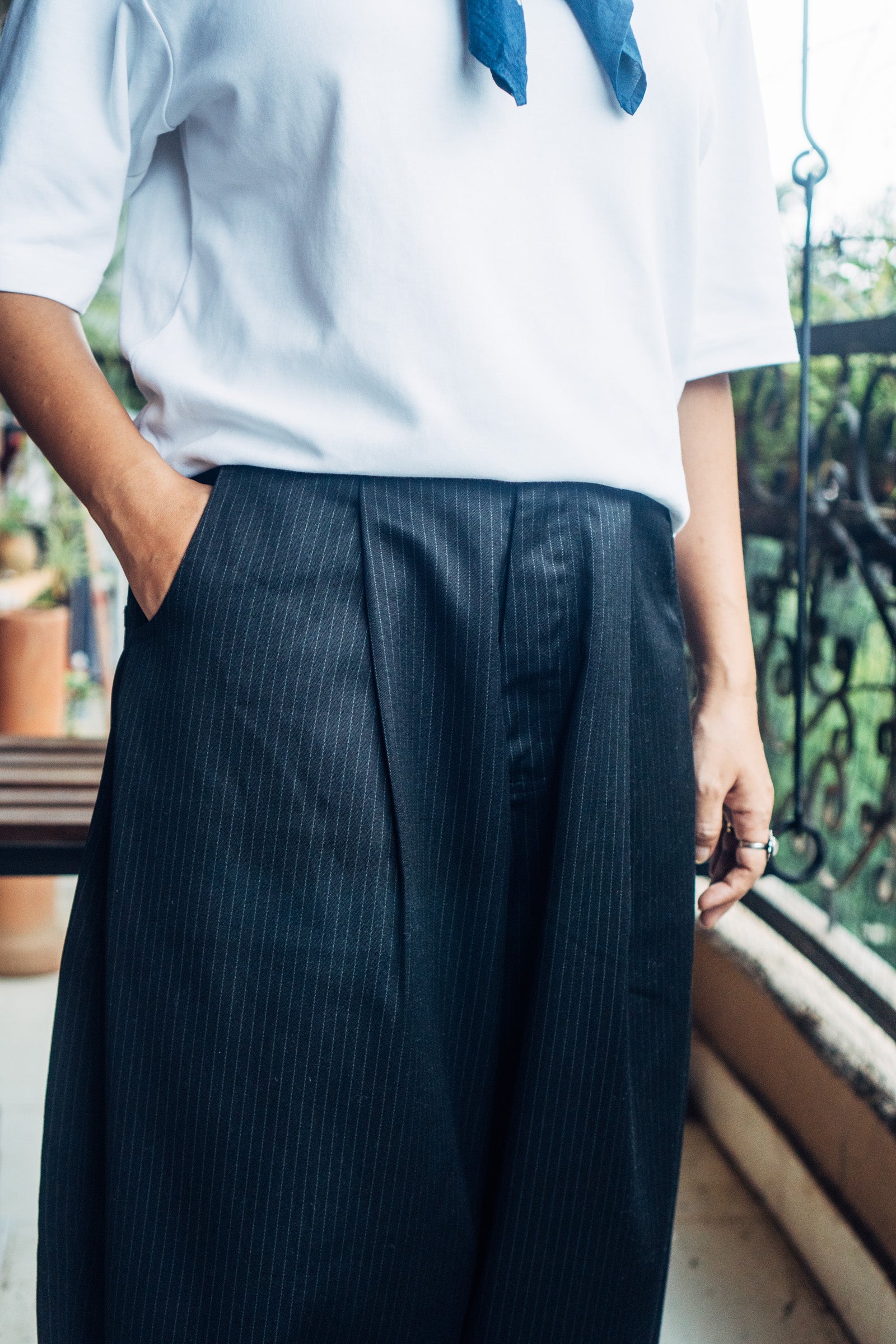 These REALLY wide leg pants feature PINSTRIPES that will make a bold addition to your wardrobe. Designed with a relaxed fit, these pants are fashioned with a curved, wide legs that taper slightly at the ankle and they can be styled from brunch to board meetings! These Unisex pants are not just versatile - they’re a statement piece that effortlessly transitions from casual to chic!