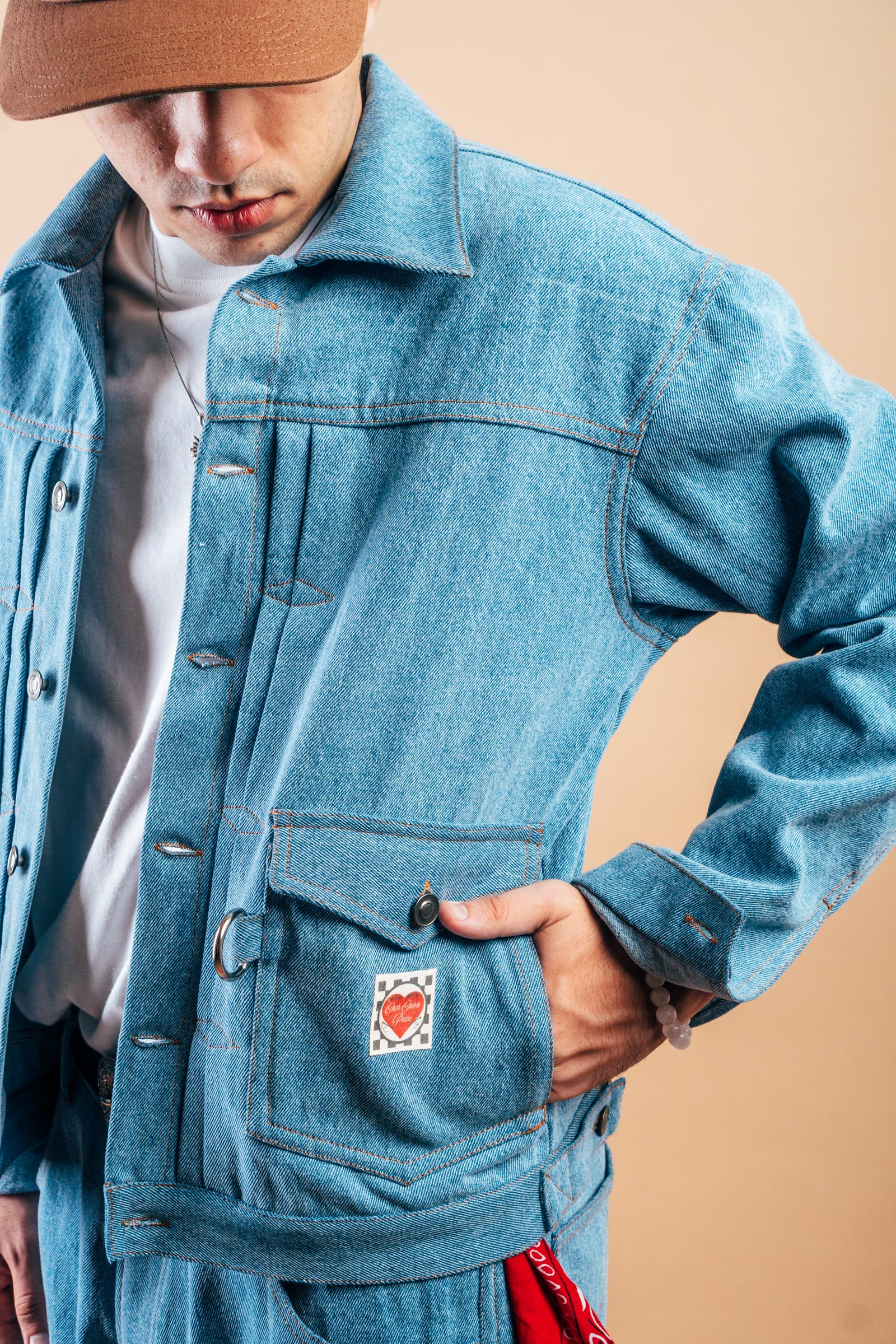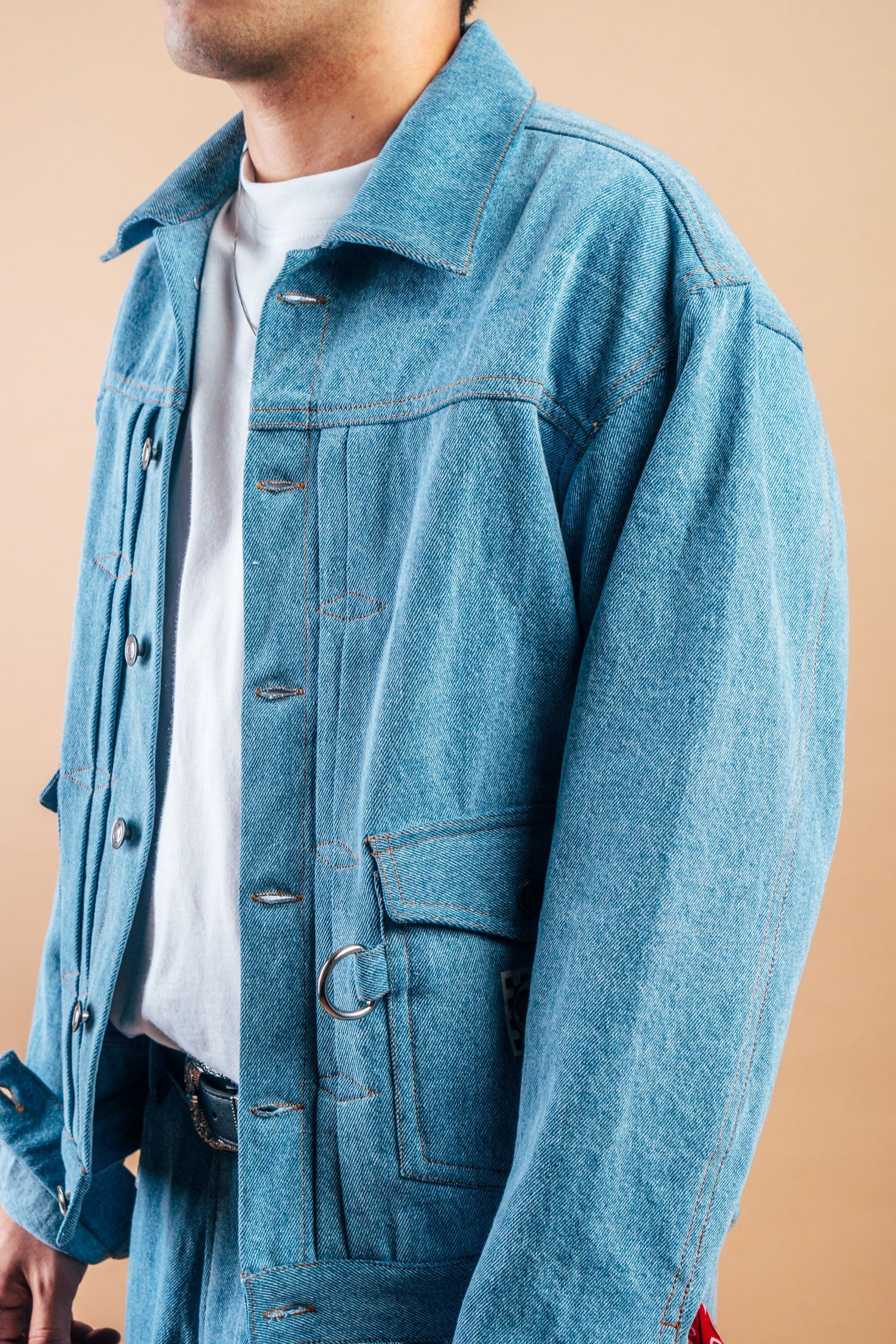 A timeless denim jacket inspired by the cult 'Type II' jacket from the 50's which is an American workwear icon. Of course we added some updates like a boxier and cropped cut, dropped shoulders, larger buttoned pockets with a combination side entry hand pocket, large internal pockets to hold your phone or notepad and a large D-ring to secure keys or charms.