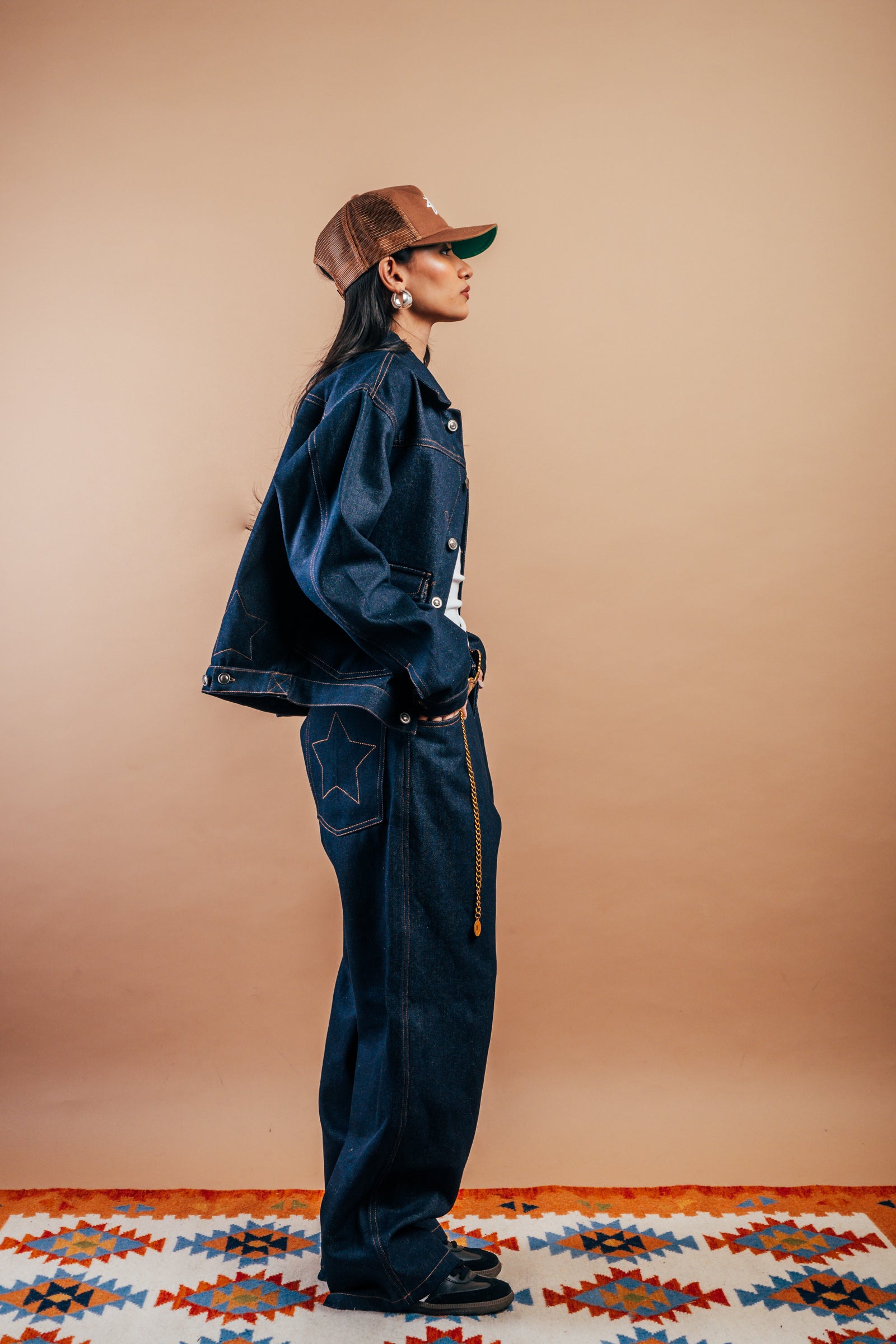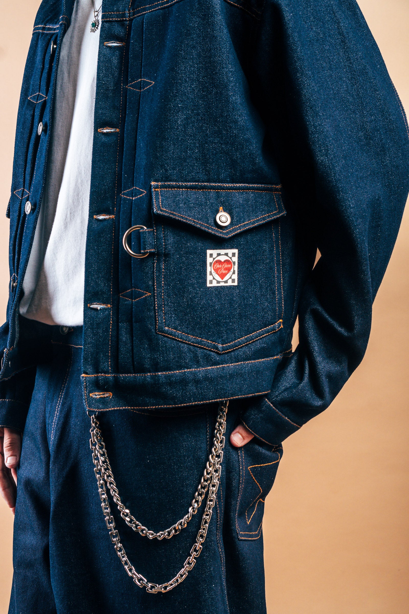A timeless denim jacket inspired by the cult 'Type II' jacket from the 50's which is an American workwear icon. Of course we added some updates like a boxier and cropped cut, dropped shoulders, larger buttoned pockets with a combination side entry hand pocket, large internal pockets to hold your phone or notepad and a large D-ring to secure keys or charms.