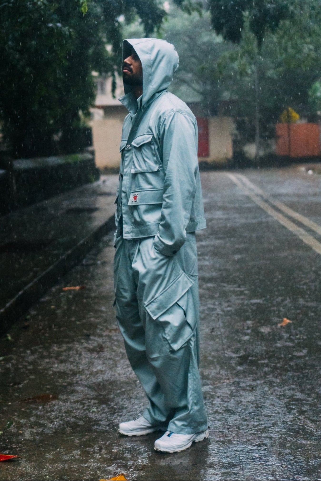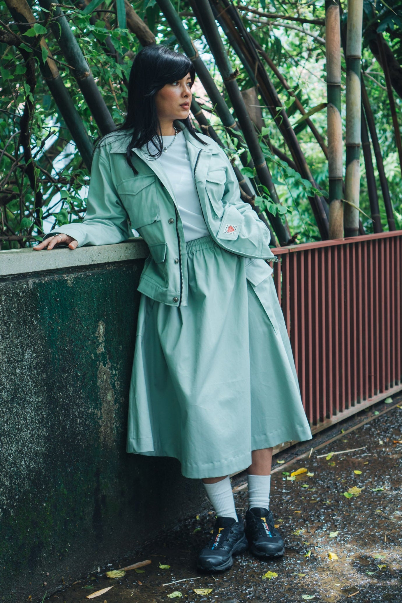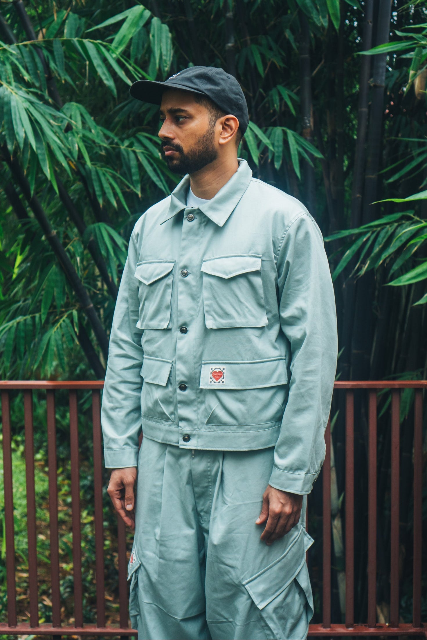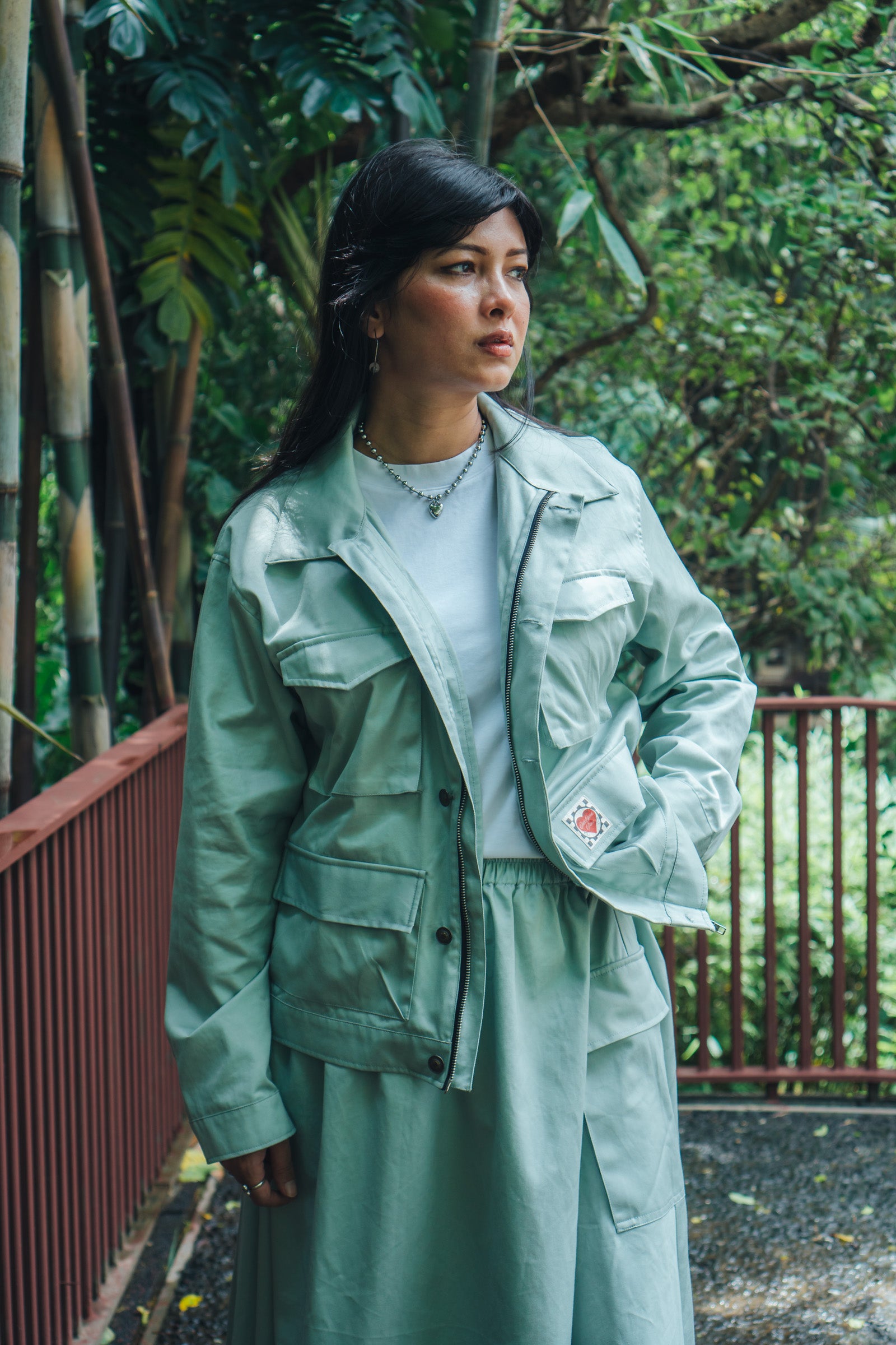 The M50x Field Jacket Jacket is our tribute to 50’s vintage military jackets. It is unlined with a boxy fit and drop shoulders. Cut from a deadstock cotton twill fabric with a water resistant coating which is sturdy and great for rainy days. Made with a buttoned rain flap, two-way YKK zip, two slanted top front pockets, two large front bottom pockets and internal pockets for the ultimate storage capacity. It also comes with a detachable hood made from the same material which allows you to leave your umbrella at home. Double stitching ensures durability while the relaxed armholes allow for easy layering.